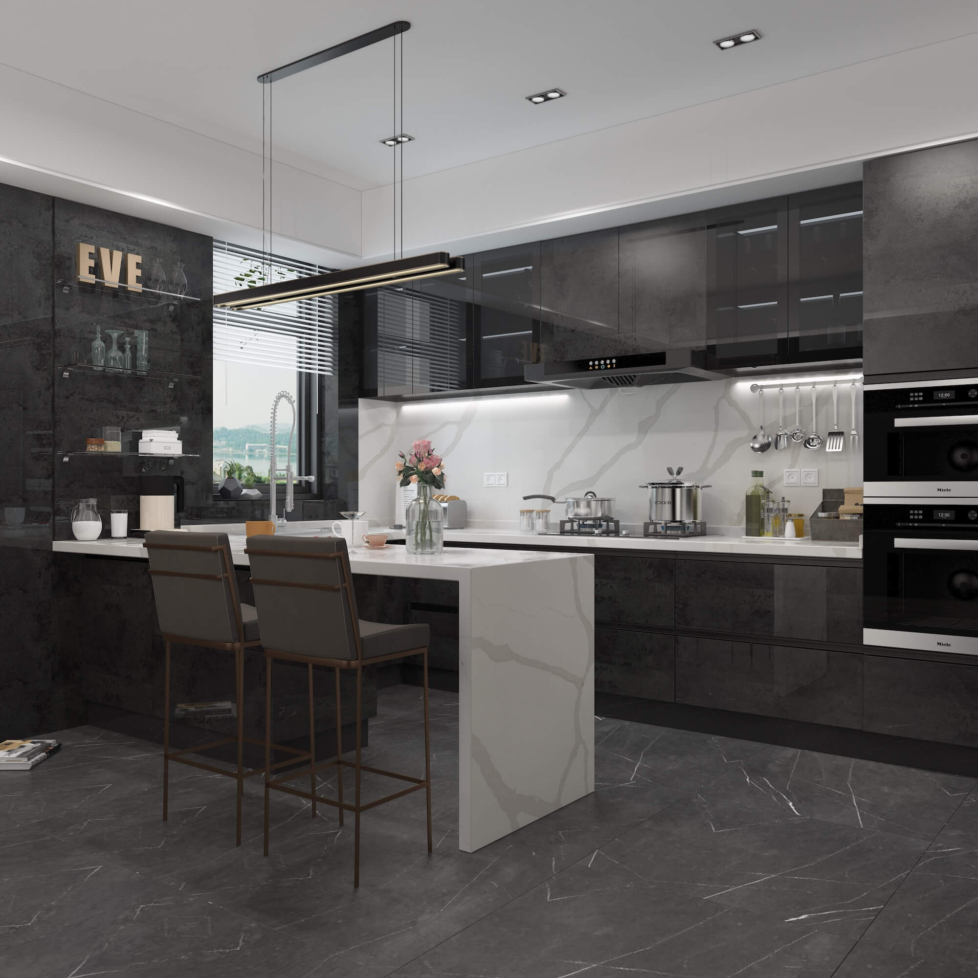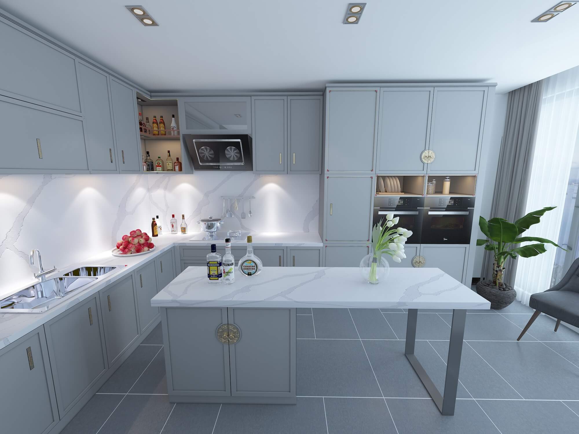 - Quality cabinets and counter tops